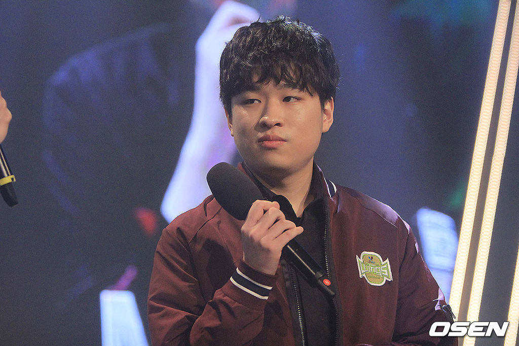 조성주는 14일 오후 서울 대치동 프릭업 스튜디오에서 열린 '2019 GSL 시즌1' 코드S 김도우와 결승전 1세트서 상대의 찌르기를 막아낸 이후 역습에 성공하면서 세트스코어를 1-0으로 만들었다.