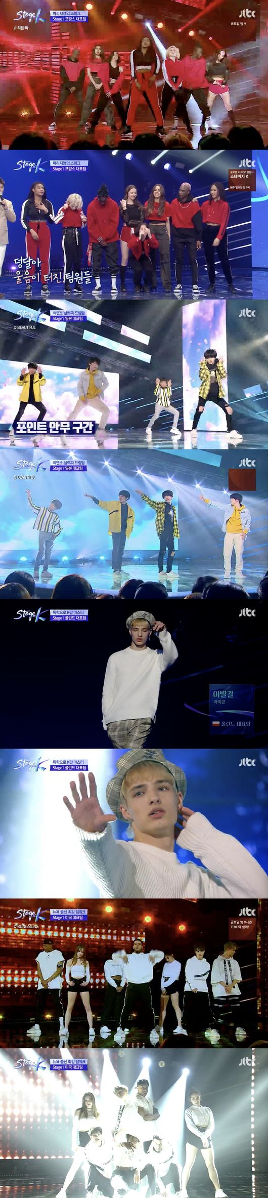 이날 대결을 펼친 국가별 대표팀으로는 미국과 일본, 폴란드, 프랑스 등 총 네 팀이 선정됐다. 가장 먼저 무대를 펼친 프랑스 팀은 거리에서 K팝을 추는 크루로 연습실은 따로 없지만 거리를 연습실 삼아 열정을 불태우고 있다는 사연으로 눈길을 끌었다.