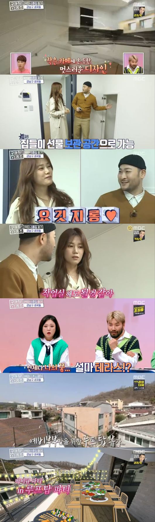 박나래는 "이미 정해진 예산이 있는데 굳이 많은 걸 포기해야하냐"고 지적, 집에 오래있을 아내에게는 마이너스라고 말했다. 이어 현실부부 코디인 미쓰라와 권다현을 다시 소환, 비장의 카드가 남았다고 했다. 바로 강남의 세곡동이었다. 강남의 흔한 빌딩숲보단 자연친화적인 느낌의 동네였다. 전원주택단지를 보며 권다현은 "우리도 나중에 여기 알아보자, 예쁘다"고 말할 정도였다.