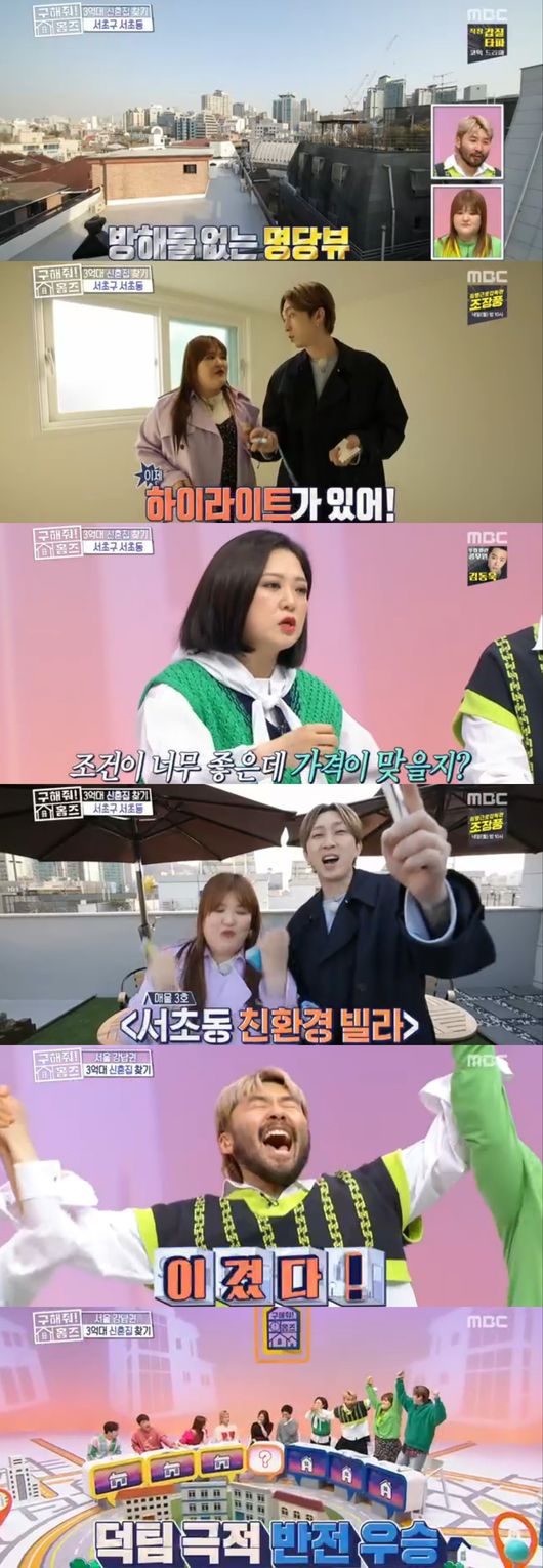 덕팀으로 강남권 대표 번화가인 방배동을 찾은 국주와 슬리피가 그려졌다. 방배동 주택가 사이에 위치한 매물 1호 집에 도착, 서울의 옛 정취가 고스란히 남아있는 구옥이었다. 앞마당부터 초인종까지 정겨움을 안겼다. 게다가 신축과는 또 다른 색다른 구조가 눈에 띄었다. 넓은 거실은 좋았으나 채광과 뷰의 부분에서 아쉬움을 안겼다.