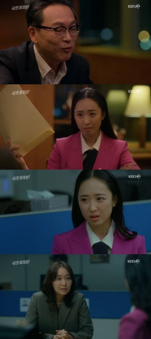 15일 오후 방송된 KBS2 월화드라마 ‘국민 여러분!’(극본 한정훈, 연출 김정현)에서 양정국(최시원 분)이 박후자(김민정 분)에게 역공하려고 했지만 번번이 실패하는 모습이 그려졌다.