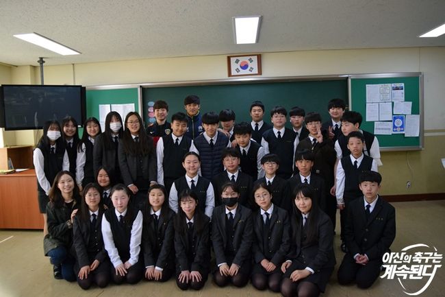 이에 아산 용화중학교 1학년 8반 학생들 전원이 이순신종합운동장을 찾아 아산무궁화프로축구단을 응원했다.