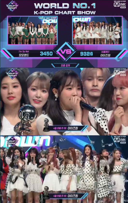 아이즈원은 “2주 연속 1위를 하게 됐다. 따뜻한 봄날이 온 것 같다. 열두명의 부모님들, 회사식구들 감사하다. 위즈원분들 사랑한다"라고 밝혔다. 이로써 아이즈원은 음악방송 7관왕에 오르는 영예를 안았다.
