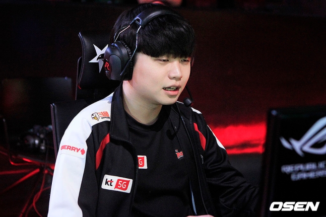 [OSEN=종로, 임재형 인턴기자] 진에어가 교체 투입으로 최종 승부수를 걸었지만 KT 미드-정글의 화력을 막을 수 없었다. KT는 ‘비디디’ 곽보성의 탈리야와 ‘엄티’ 엄성현의 리신 활약에 힘입어 3세트를 승리하고 LCK 잔류에 성공했다.