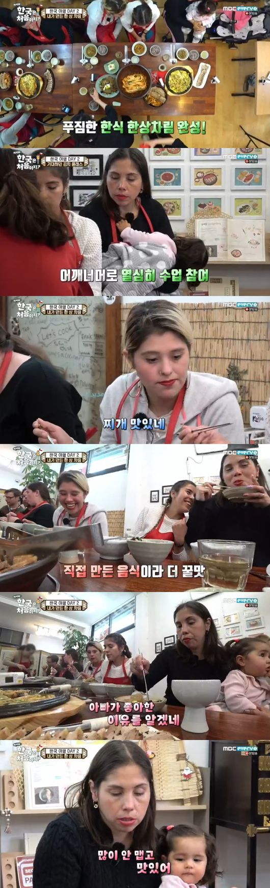 직접 만든 푸짐한 한식 상차림을 보며 감탄, 바로 시식했다. 직접 만든 음식이라 더 꿀맛이라며 엄지를 세웠다. 자매들은 "많이 맵지도 않고 맛있다"며 한식 맛에 감탄했다.