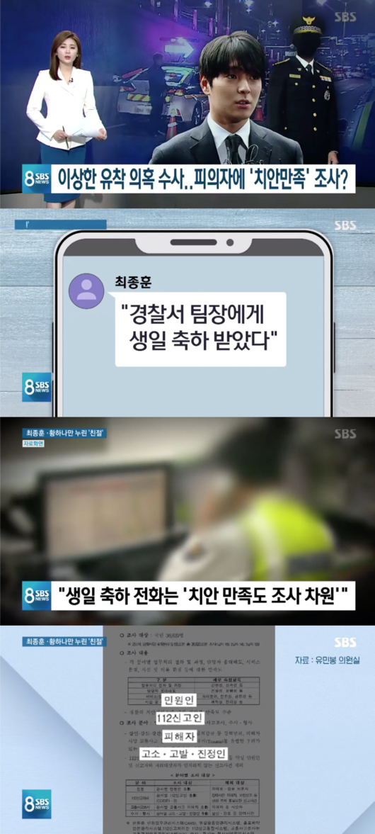 그러나 2016년 치안만족도 조사 대상에는 피해자만 있을 뿐 피의자는 없었다. 최종훈은 당시 음주운전 혐의의 피의자 신분이었다. 관계자는 “피의자에게는 치안만족도를 묻지 않는다”고 잘라 말했다. 경찰은 19일 최종훈을 뇌물공여 의사표시 혐의만 적용해 기소의견으로 검찰에 송치했다.