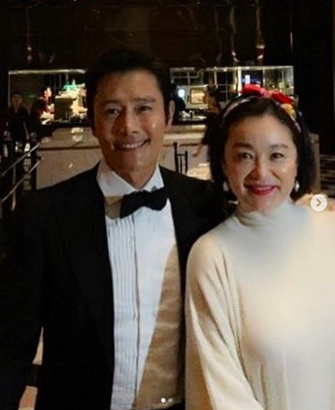 공개된 사진 속 이병헌은 말끔하게 슈트를 차려 입고 임청하와 나란히 서서 카메라를 바라보며 미소를 짓고 있다. 단발머리의 임청하는 올해 64세의 나이에도 변함없이 아름다운 미모를 뽐내고 있다.