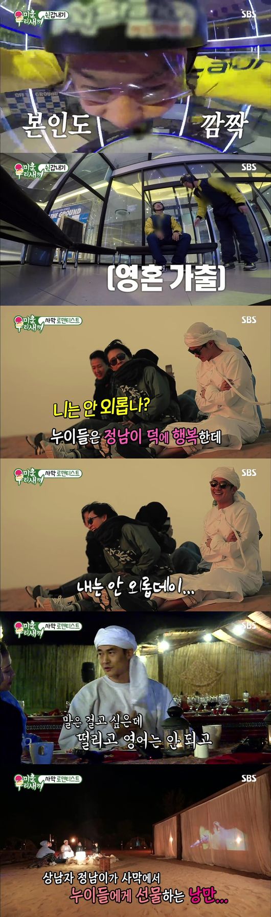 절친 누이들과 사막 투어에 나선 배정남은 아름다운 일몰을 보며 감상에 젖었다. 이어 사막 숙소를 찾은 일행은 식사를 하며 정남의 뉴욕 유학시절 에피소드에 흠뻑 빠져들었다. 영어를 잘 하지 못하는 정남이 첫 눈에 빠진 여성에게 전자사전을 이용하면서까지 다가갔으나 이미 남자친구가 있다는 사실에 어쩔 수 없이 포기를 했다는 러브스토리에 누이들은 “더 이상 슬퍼서 못 듣겠다”라며 안타까워했다. 정남은 사막에서 퀸의 노래와 영상을 틀어주는 특별한 선물로 누이들을 감동시키는 등 로맨티시스트의 면모를 뽐냈다.