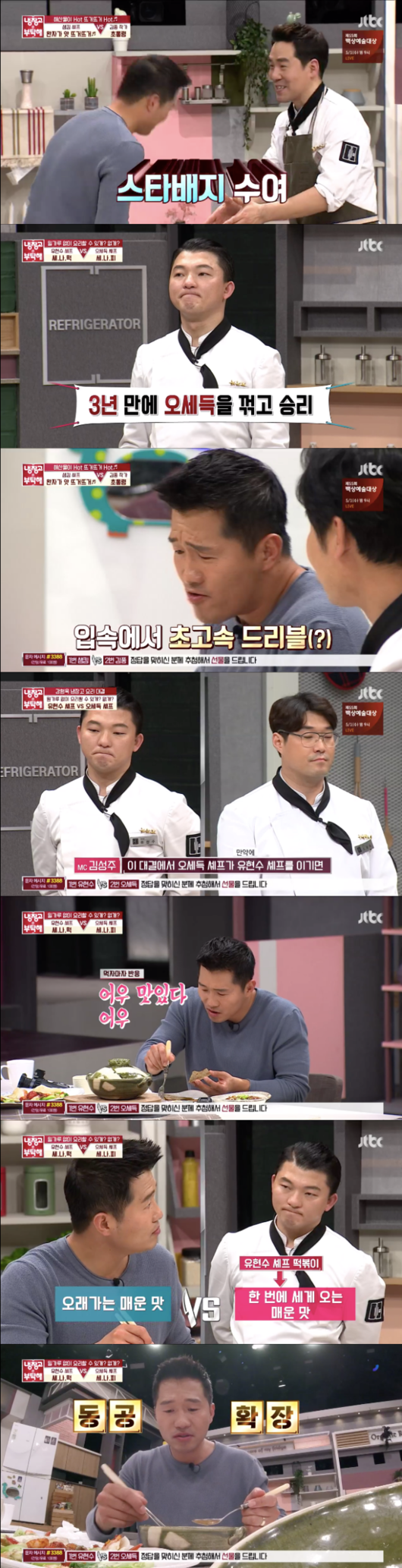 유현수의 요리 역시 강형욱을 사로잡았다. 쌀로 만든 쫄깃한 식감의 떡볶이와 매운 맛을 좋게 평가했다. 특히 밀가루 없이 만든 어묵 국수를 맛 보고 놀란 강형욱이었다. 결국 강형욱의 선택은 유현수였다. 이로써 유현수는 처음으로 오세득과의 대결에서 승리할 수 있었다. /seon@osen.co.kr
