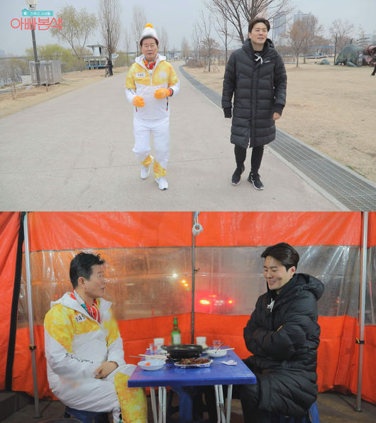 이날 방송에서 태진아는 늘어나는 뱃살을 보며 운동의 필요성을 실감한다. 그는 운동을 하기 위해 한강 공원에 가는 아들 이루를 따라 나선다. 과거 평창 올림픽 성화 봉송 당시 의상을 챙겨 입고 한강에 나온 태진아는 마치 아들과 나들이를 나온 듯 즐거워한다.