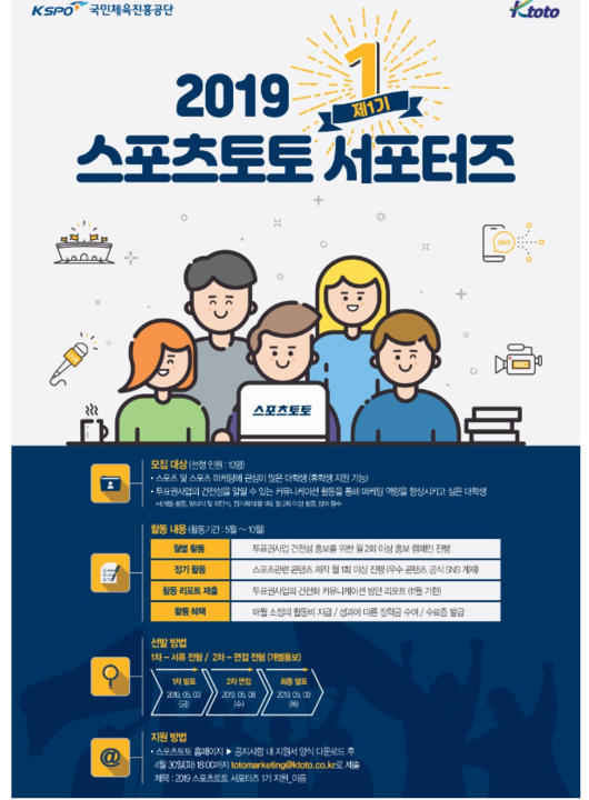 ‘스포츠 마케터 지망생 여러분, 2019년 제 1기 스포츠토토 서포터즈로 모이세요’