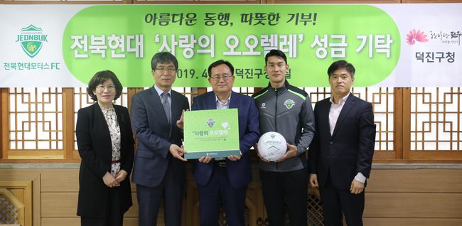 전북현대는 25일 오후 전주월드컵경기장 소재지인 전주 덕진구청을 방문해 ‘사랑의 오오렐레’ 성금을 기탁했다.