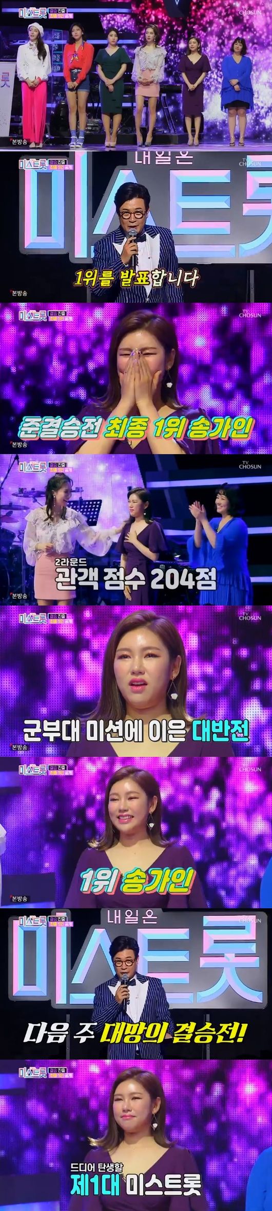 '내일은 미스트롯' 송가인이 순위를 뒤집으면서 1위로 결승에 진출했다.