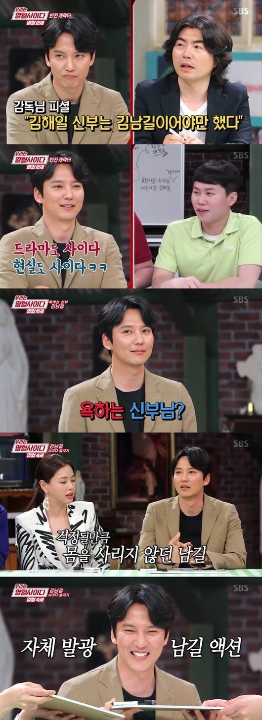 동료 배우들도 김남길에 대해 "걱정될 만큼 몸을 사리지 않는다"고 증언했다. 액션비법에 대해 김남길은 "어릴 때부터 태권도 다진 기본기"라며 액션을 위해 특별히 준비한 것이 있냐고 묻자 "액션이야 뭐"라고 너스레를 떨어 재미를 더했다. 이어 130도 돌려차기를 마지막으로 한 번 더 선보여 모두를 감탄하게 했다.