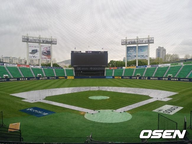 이날 잠실구장에는 경기를 앞두고 비가 내리기 시작했다. 그라운드에 방수포가 쳐진 가운데, 선수들은 실내 훈련으로 경기 전 훈련을 대신했다. 기상청 예보에 따르면 이날 잠실에는 많은 양은 아니지만, 오후 6시까지 꾸준하게 비가 내릴 예정이다.