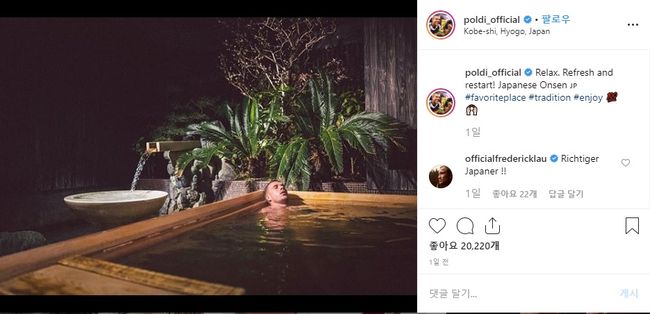 포돌스키는 지난 27일 자신이 경기에 출전하지 않는다는 것을 SNS에 밝혔다. 자신의 SNS에 포돌스키는 온천을 하는 모습을 올리며 "릴렉스, 리프레시, 리스타트! 일본 온천"이라고 적었다.