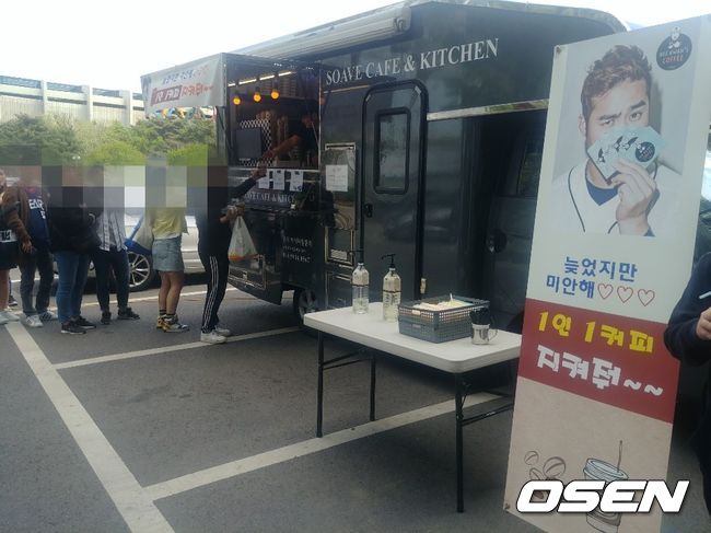 커피차를 부른 주인공은 유희관. 유희관은 지난해 10승 공약으로 팬을 위한 커피차를 부르겠다고 내걸었다. 유희관은 10승을 달성했고, 팬들과의 약속을 지켰다. 전액 사비로 커피차를 잠실구장으로 불렀다.