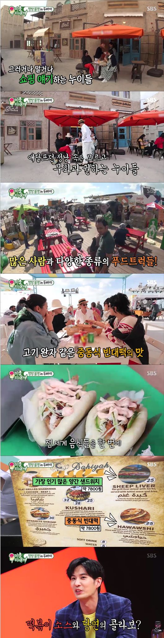 이어 한 껏 멋지게 차려입은 후, 도심의 빌딩 숲속으로 다시 들어왔다. 배정남은 다음 관광코스로 사막과는 또 다른 느낌인 알시프란 곳으로 왔다. 두바이의 옛모습과 현대적인 모습이 공존한 복합문화 공간이었다. 누나들도 "정말 예쁘다"며 사진찍기에 바빴다. 급기야 사진 찍느라 경로이탈까지하며 동선이 멀어지기도 했다. 배정남은 그런 누이들을 하나 둘씩 챙기며 다시 소환해 웃음을 안겼다.