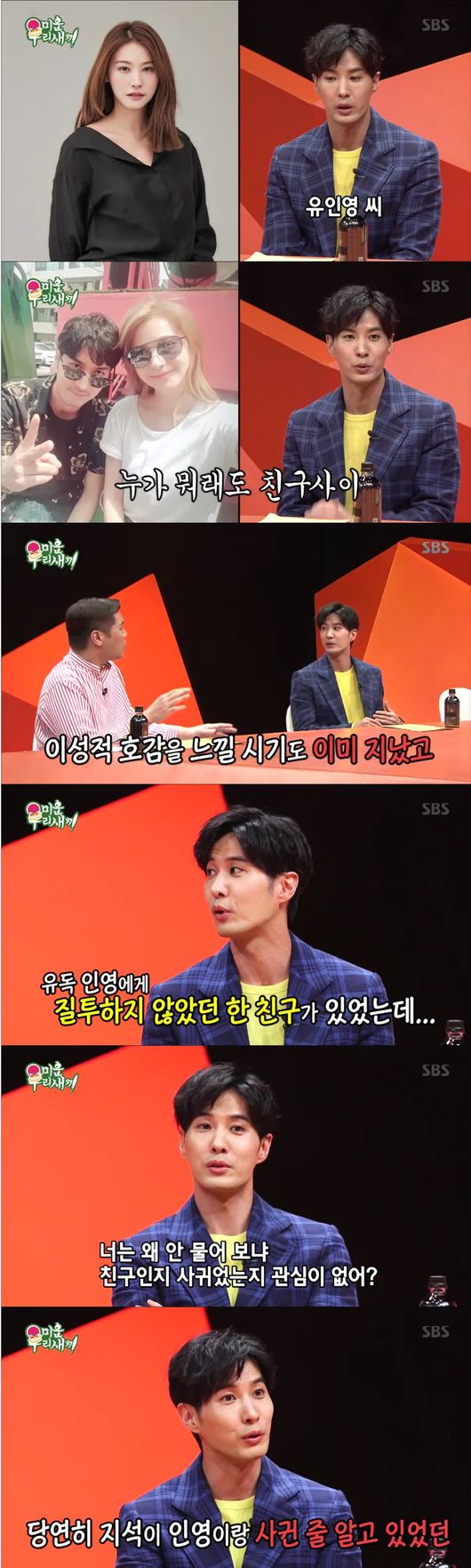 이어 가끔 연애할 때 여자친구에게도 유인영이 집중 견제대상이 됐다는 김지석은 "그걸 질투유발해 가끔씩 즐겼다"면서 질투 부작용에 대해선 "유독 질투하지 않던 친구가 있었다, 그 사람도 당연히 사귄줄 알더라"고 말했다. 이때, 서장훈이 "그 분도 연예인이냐"며 기습 질문, 김지석은 "기억력 안 좋다"며 능청스럽게 빠져나가 웃음을 안겼다.