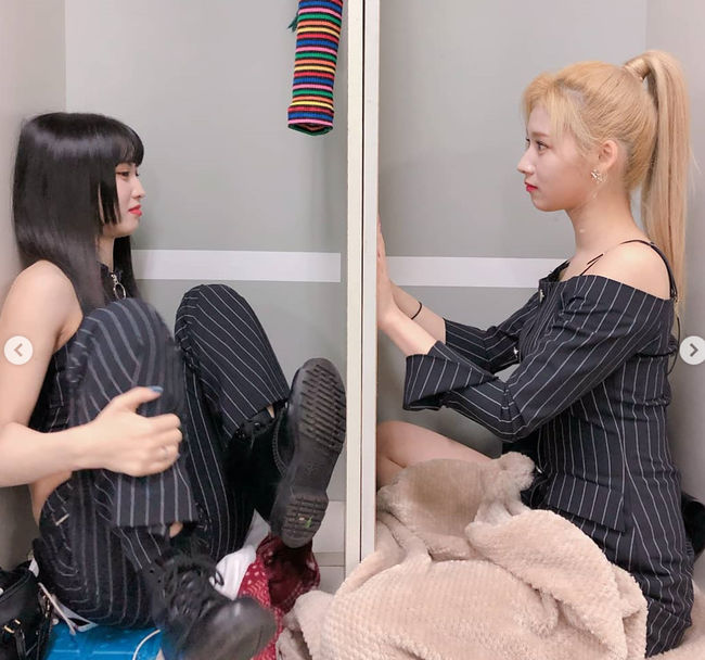 트와이스 멤버 모모와 사나가 '예쁜애' 데칼코마니 거울샷을 공개했다.
