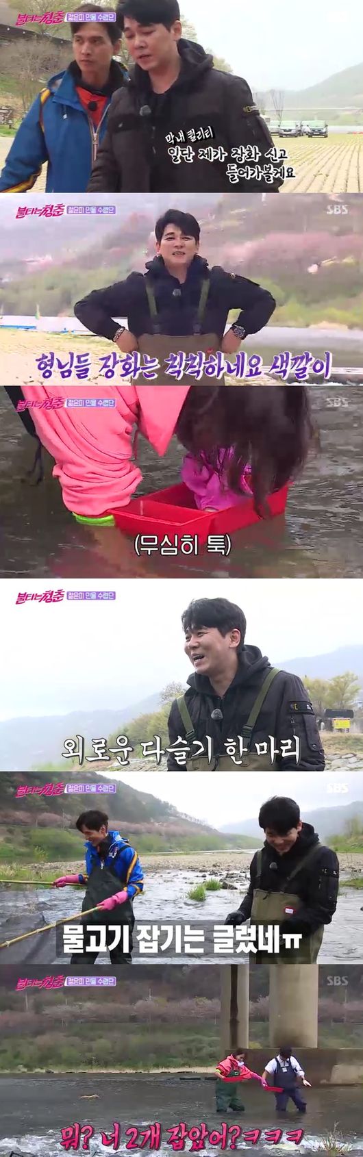 구본승과 최민용은 족대를 이용해 낚시에 열중, 하지만 거센 물살로 쉽지 않았다.
