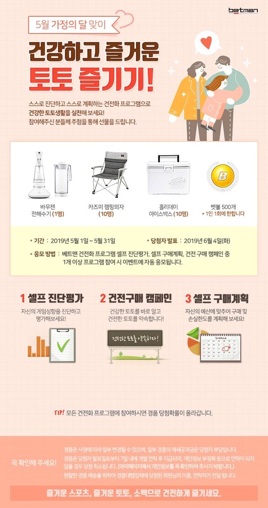 5월 한 달 간 건전화 이벤트 실시…스스로 진단하고 계획하는 건강한 토토생활