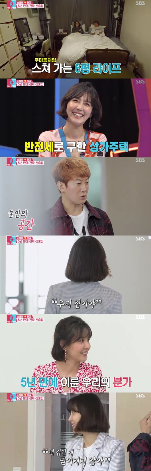 허규는 누군가와 전화를 시도, 이어 외출복으로 갈아입었다. 바로 5년만에 진짜 신혼집을 보러가기 위해서였기 때문. 이어 신규부부의 NEW 하우스가 최초 공개됐다. 신동미는 이사하면 가장 하고 싶은 것에 대해 "화장실에 나와서 맘 놓고 옷 벗고 다니고 싶다, 예쁜 잠옷을 입을 것"이라고 말했고, 허규는 "난 친구들과 술먹고 놀고 싶다"며 들뜬 모습을 보였다.