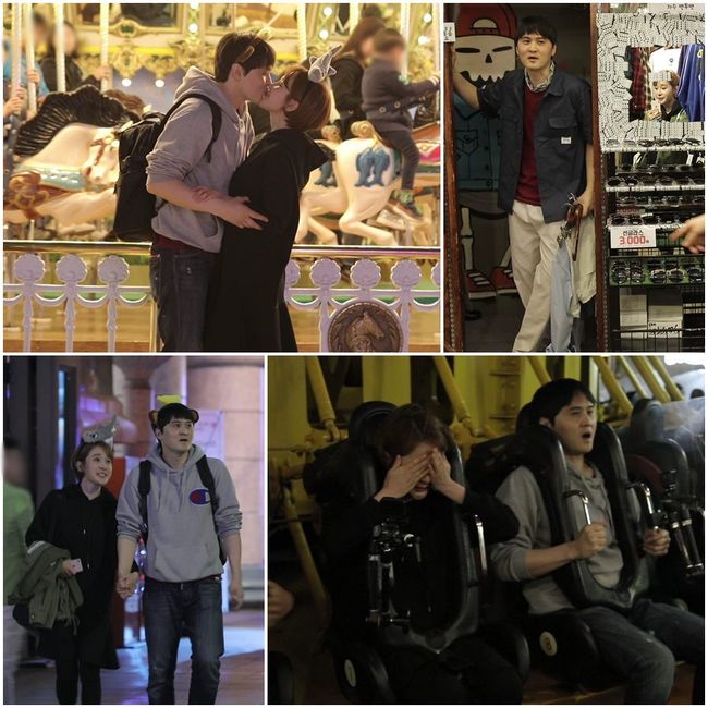그리고 두 사람은 결혼 4년 차임에도 불구하고, 마치 처음 놀이공원을 찾아온 연인들처럼 귀여운 커플 머리띠를 하고 시도 때도 없이 ‘꽁냥꽁냥’ 러브모드를 발동하는 등 누가 먼저랄 것도 없이 어릴 적 동심으로 돌아가 100% 놀이공원을 즐기는 모습으로 주위의 시선을 사로잡았다. 특히 화려한 불빛이 반짝이는 회전목마 앞에서 남몰래 기습 뽀뽀를 나누는, 영화 같은 장면까지 연출하며 보는 이들을 부럽게 만들었다.