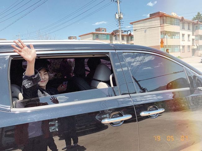 공개된 사진 속 시우민은 멤버들에게 군 입대 전 마지막 인사를 건네고 있다. 모자 아래 시우민의 밝은 표정은 멤버들은 물론, 팬들까지 안심시킨다.