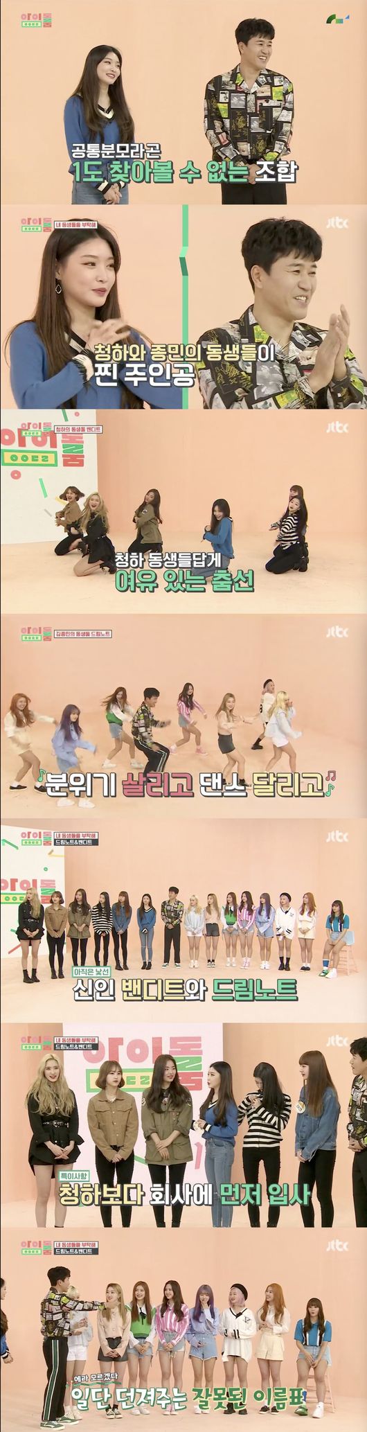 7일 오후 방송된 JTBC '아이돌룸'에서는 ‘내 동생돌을 부탁해’ 특집으로 꾸며져 김종민, 청하, 드림노트, 밴디트가 출연했다.