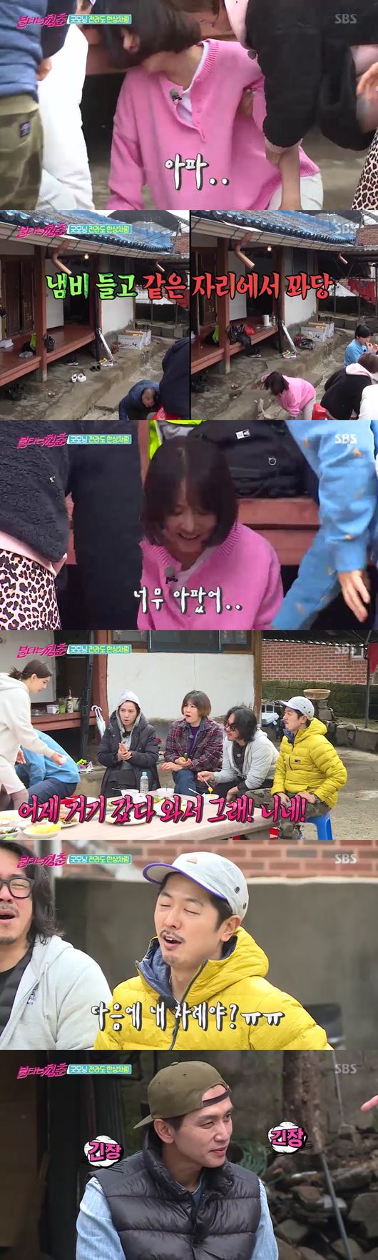 막내 최민용과 김부용은 계란프라이를 담당, 이때, 김광규가 완성된 누룽지를 옮기던 중 발을 삐끗하며 넘어지고 말았다. 작은 돌멩이에 발이 걸려버린 것. 다행히 누룽지는 살렸으나 고통 후 창피함이 밀려든 김광규의 모습이 폭소하게 했다. 이를 본 막내들은 "남일 같지 않아, 다리에 힘이 풀린 것"이라며 안타깝게 바라봤다.