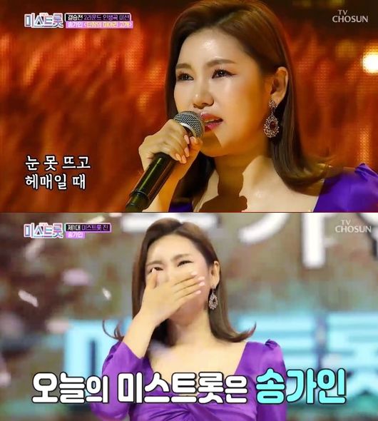 송가인은 TV CHOSUN 트로트 오디션 ‘미스트롯’에 출연해 모든 경연에서 뛰어난 실력을 선보이며 큰 인기를 끌었고, ‘제1대 미스트롯’에 올라 화제를 모았다.
