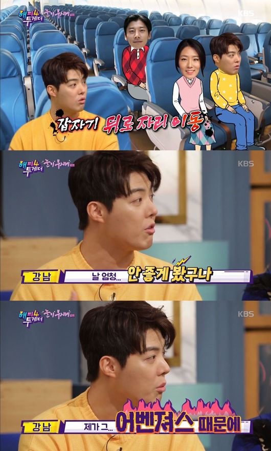 이어 강남은 “정글 가는 비행기에서 이상화가 내 옆자리였는데, 두 시간이 지나니 곽윤기와 자리를 바꾸더라. 그래서 나를 안 좋게 본 줄 알았다. 나중에 알게 된 건 영화 때문이었다. 내가 그 영화를 못 봐서 비행기 안에서 3번 보니까 이상화가 너무 심심했던 것이었다”고 설명했다.