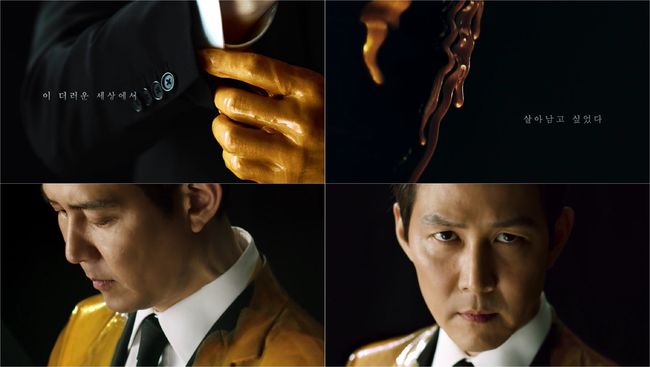포스터와 함께 공개된 티저 영상은 황금빛 액체와 검정 슈트의 색감 대비가 긴박하게 진행되는 배경 음악 속에서 더욱 생생하게 담겼다. 셔츠의 소매를 다듬는 와중에도 그의 온몸을 타고 흘러내리는 금빛의 향연. 더불어 나지막이, 그러나 그 무엇보다도 단단하게 전해지는 장태준의 목소리는 더러운 세상 속에서 치열하게 생존하려는 그의 굳은 의지를 드러낸다. 아직은 때가 아니라고 판단했기에, 저 깊은 곳에 숨기고 있는 야망이 궁금해지는 순간이다. 정면을 응시하는 그의 마지막 눈빛은 그 어느 때보다 차갑고 날카롭다.