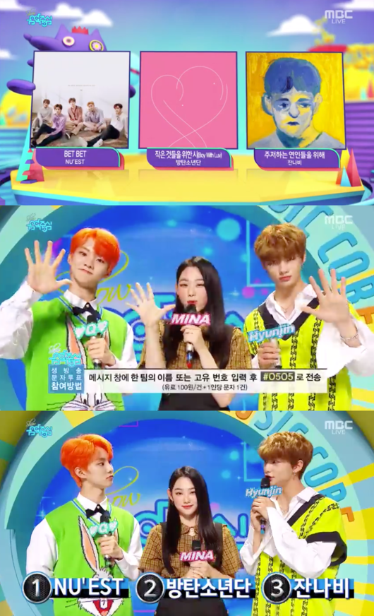 뉴이스트, 방탄소년단, 잔나비가 ‘음악중심’ 1위를 두고 맞붙었다.