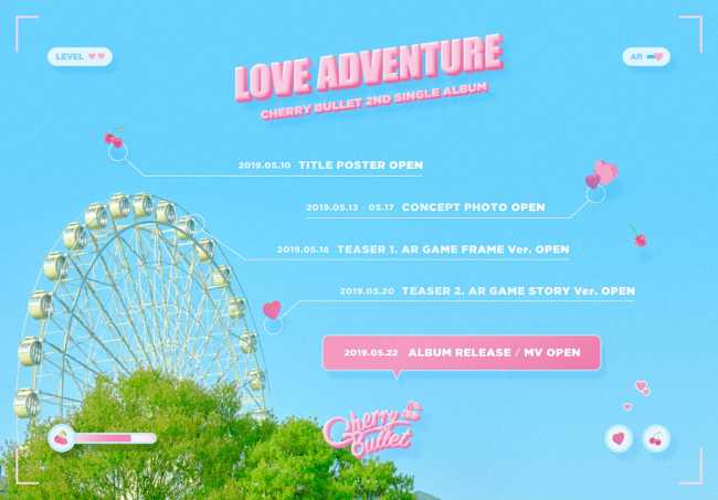 공개된 이미지는 푸르고 청량한 하늘을 배경으로 러브 어드벤처 AR게임을 주제로한 이번 콘셉트답게 하트와 체리 등 사랑스러운 AR아이콘들로 눈길을 끈다. 5월 13일부터 17일까지는 콘셉트 포토가 공개되며 18일엔 첫 번째 티저 영상이, 20일엔 두 번째 티저 영상이 공개될 예정이다.