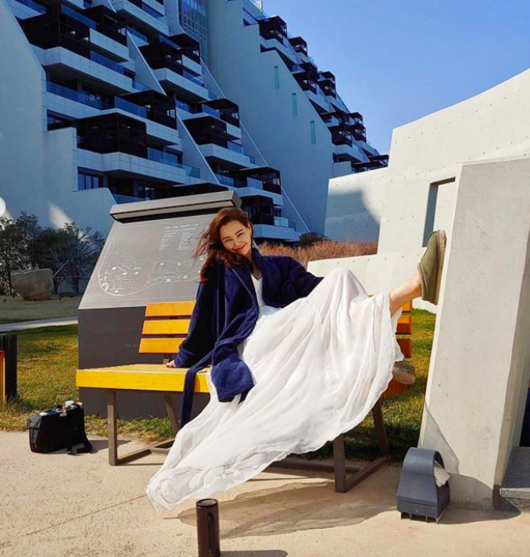 이어 이하늬는 추운 탓인지 드레스 위에 아우터를 장착한 채 벤치에 앉아 카메라를 응시하고 있다. 보는 사람들까지도 기분 좋게 만드는 이하늬표 미소가 인상적. 한 쪽 다리를 들어보인 포즈 역시도 이하늬의 유쾌한 성격을 확인케 한다.