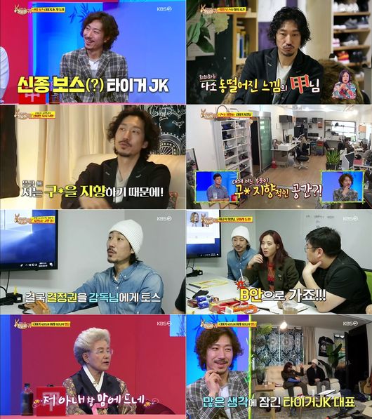 구글을 지향한다는 타이거JK는 자유로운 업무 분위기를 지향하기 때문에 회사에는 형식이나 규칙이 없다며 사무실을 소개했다. 영상을 보던 전현무는 널려있는 쓰레기와 곳곳에 짐이 쌓여있는 사무실을 보고는 “구글이 아니라 그냥 정리를 안 한 거 예요”라 했고, 구글 사옥과 아파트 상가에 위치한 타이거 JK사무실이 대조적으로 보이며 웃음을 선사했다.
