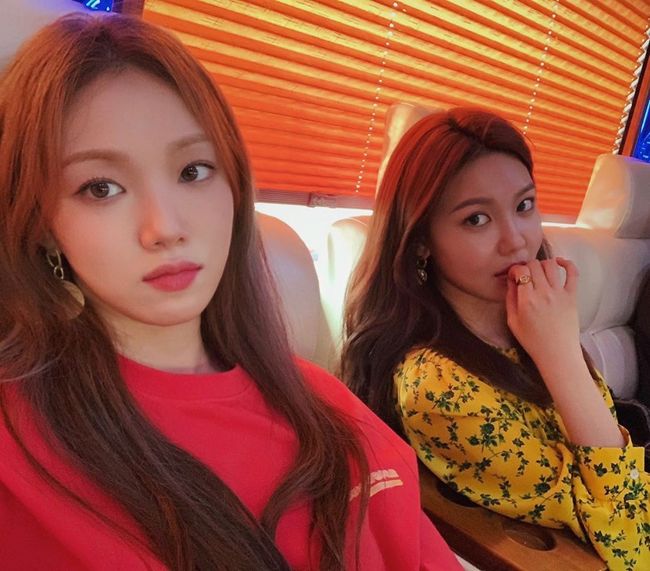 사진 속 이성경과 수영은 소파에 앉아 휴식을 취하고 있는 모습이다. 이성경은 빨간색 맨투맨의 캐주얼한 차림이고, 수영은 노란색 블라우스로 세련된 코디를 완성했다. 상반된 스타일링의 두 사람은 각기 다른 매력으로 미모를 뽐낸다.
