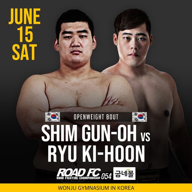 6월 15일 원주 종합체육관에서 열리는 굽네몰 ROAD FC 054에 새로운 대진이 추가됐다. ‘괴물 레슬러’ 심건오(30, 김대환MMA)가 신예 류기훈(24, 5-STAR GYM)과 맞대결을 펼친다.