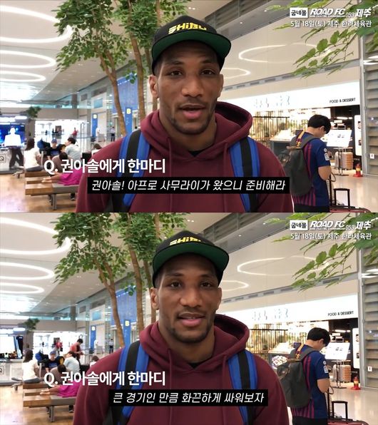 다시 한국을 찾은 소감을 묻자 만수르 바르나위는 “다시 돌아와 좋고 한국을 대표하는 선수와 큰 경기를 하게 돼 기쁘다”라고 말했다. 이어 “권아솔! 아프로 사무라이가 왔으니 준비해라. 큰 경기인 만큼 화끈하게 싸워보자!”라며 투지를 불태웠다.