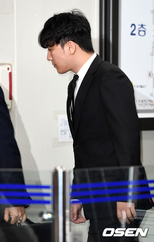승리는 이날 오전 10시 서울중앙지방법원에서 열린 구속 전 피의자 심문(영장실질심사)을 받기 위해 모습을 드러냈다. 검정색 정장 차림의 승리는 굳은 표정으로 "혐의를 인정하느냐"는 취재진의 질문에는 일절 대답하지 않은 채 법정으로 향했다.