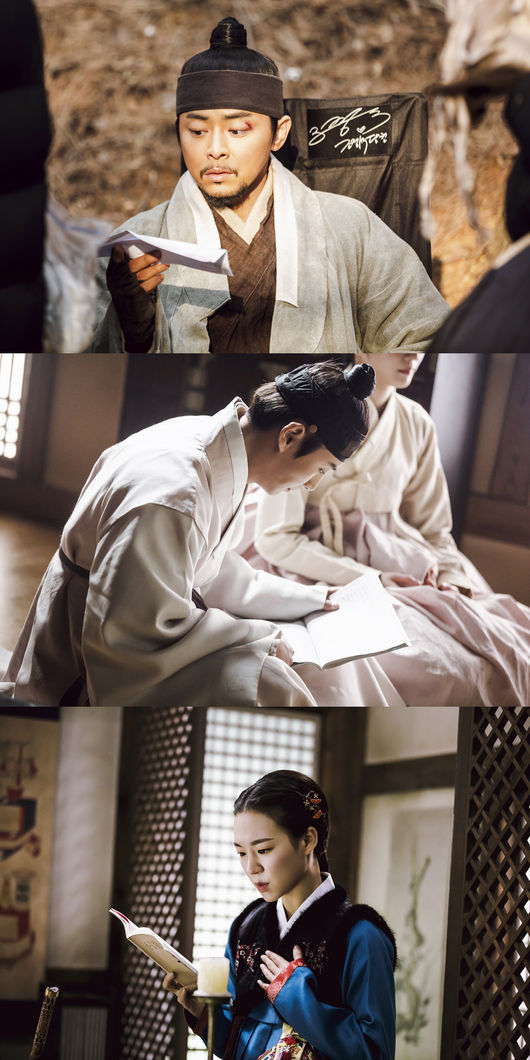 공개된 사진은 ‘녹두꽃’을 이끌어가는 세 주인공 조정석, 윤시윤, 한예리의 촬영 현장 모습을 담고 있다. 모두 다른 촬영 현장을 포착한 것임에도 불구하고, 세 배우는 약속이라도 한 것처럼 똑같이 손에 든 대본을 뚫어져라 바라보며 집중하고 있다. 야외에서도, 실내에서도 변함없는 ‘녹두꽃’ 배우들의 연기 열정이 감탄을 자아낸다.