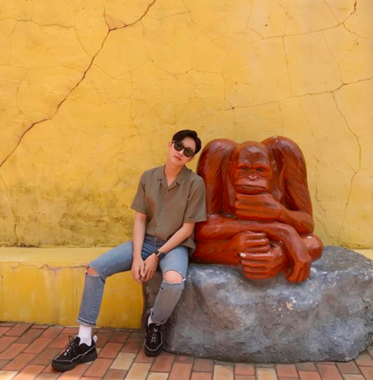 공개된 사진을 보면 진영은 고릴라 동상 옆에 앉아 포즈를 취했다. 팬들은 "선글라스를 뚫고 나오는 잘생김" "나도 오빠의 가족이고 싶다"는 등의 댓글을 달았다.
