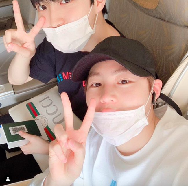 공개된 사진 속 하성운과 김재환은 비행기 안에서 나란히 앉아 카메라를 향해 브이 포즈를 취하고 있다. 두 사람 모두 흰 마스크로 입을 가린 상태이지만 훈훈한 비주얼로 눈길을 끈다. 또한 두 사람의 돈독한 우정 역시 확인할 수 있다.