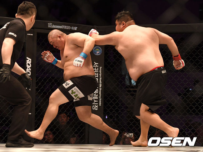 잠시 심판의 경기 중단이 이뤄진 후 이어진 경기서 아오르꺼러는 허재혁에게 반격을 허용했다. 그러나 힘의 차이가 분명하게 나타났다. 아오르꺼러는 끈질기게 펀치를 날렸고 허재혁은 쓰러졌다. 아오르꺼러가 파운딩을 시작하자 심판은 경기를 중단 시켰고 승자는 아오르꺼러였다. / 10bird@osen.co.kr
