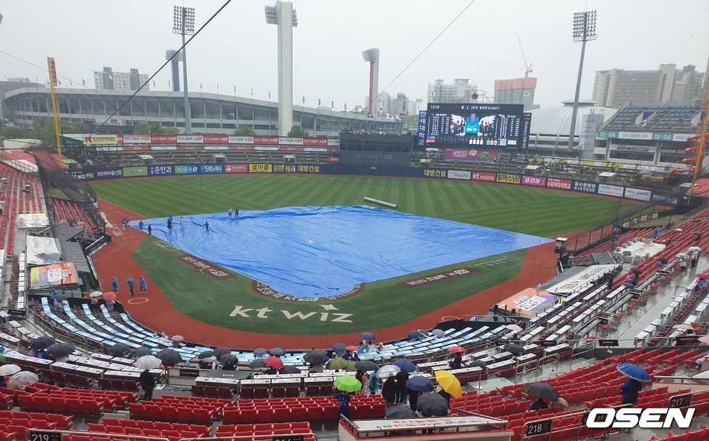이날 오전부터 수원지역에 비가 내렸고 경기 개시 시작 30분 전부터 굵은 빗방울이 수원KT위즈파크를 적셨다.