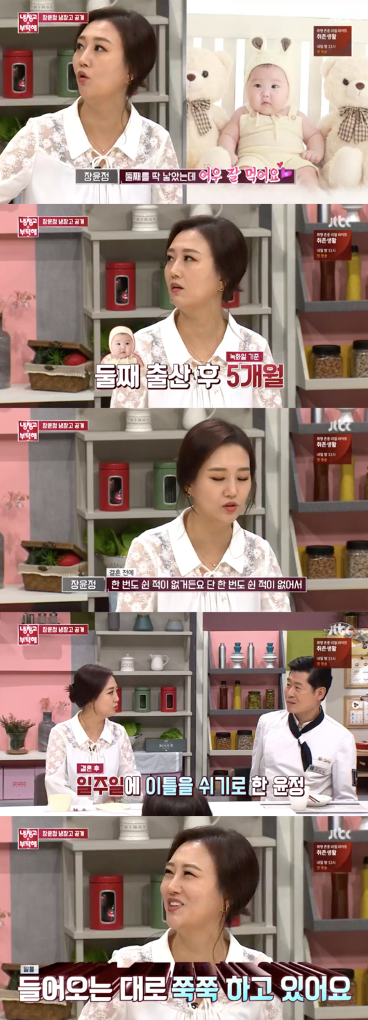 출산 후에도 ‘열일’하고 있는 만큼 몸이 이전 같지 않다는 걸 느낀 장윤정은 셰프들에게 ‘관절통에 좋은 보양식’을 요청했다. 장윤정은 “아이를 낳고 나면 모든 뼈마디가 벌어진다고 하지 않나. 40대가 되고 나서 아이를 낳고 보니까 회복이 오래 걸린다. 하체에 힘을 받아야 노래를 하는데 지금 숭구리 당당이다”고 밝혔다.