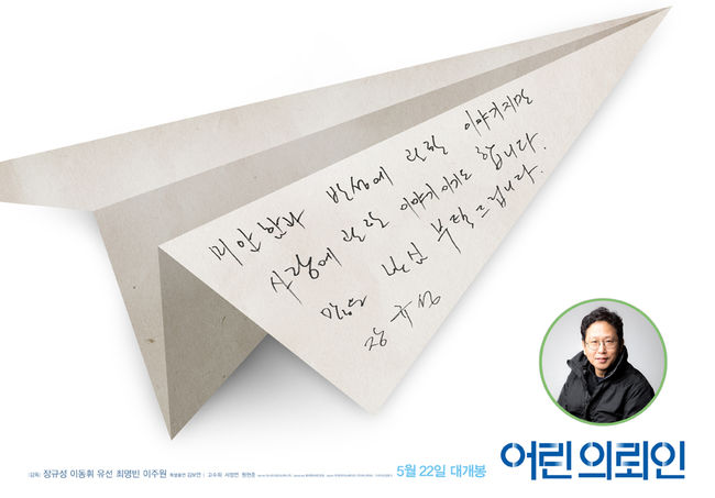 영화 ‘어린 의뢰인’(감독 장규성, 제공제작 이스트드림시노펙스, 공동제공배급 롯데엔터테인먼트, 공동제작 한국이노베이션・퍼니픽쳐스)의 배우 이동휘가 내일(5월 22일) 개봉을 하루 앞두고 친필 메시지가 담긴 스페셜 포스터를 공개했다.