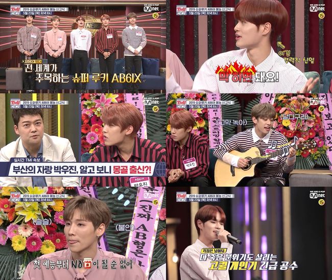 오늘(23일, 목) 저녁 8시 방송되는 Mnet ‘TMI NEWS’에서는 데뷔 전부터 큰 화제를 모았던 대형 신인 AB6IX가 출연한다. 오늘 방송은 AB6IX 완전체가 출연하는 첫 스튜디오 예능인 만큼 AB6IX만의 남다른 끼와 매력을 확실하게 보여줄 예정이다.